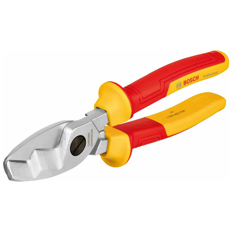 As a professional tradesperson, you need tools that are easy to use and meet all legal requirements. With the Bosch Professional VDE cable shears, you can dismantle and cut wires, even if you unexpectedly make contact with live parts. This standard-compliant tool is insulated with Thermoplastic Polyurethanes (TPU). It has been tested up to 10,000 volts and VDE-certified up to 1,000 volts according to DIN EN/IEC 60900. You will find the VDE cable shears convenient and versatile. With its twin blade technology, you can use the first blade for dismantling and the second for cutting the wire. These durable shears are made of forged steel and have hardened cutting edges. With VDE hand tools added to our Bosch Professional range, you get all your tool requirements in reliable Bosch quality.