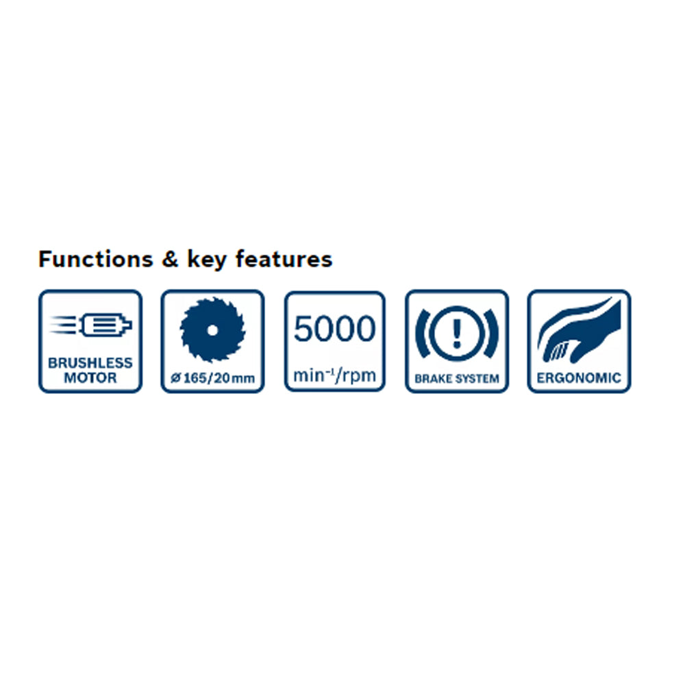 - The circular saw is compatible with all batteries and chargers in the Bosch Professional 18V System.