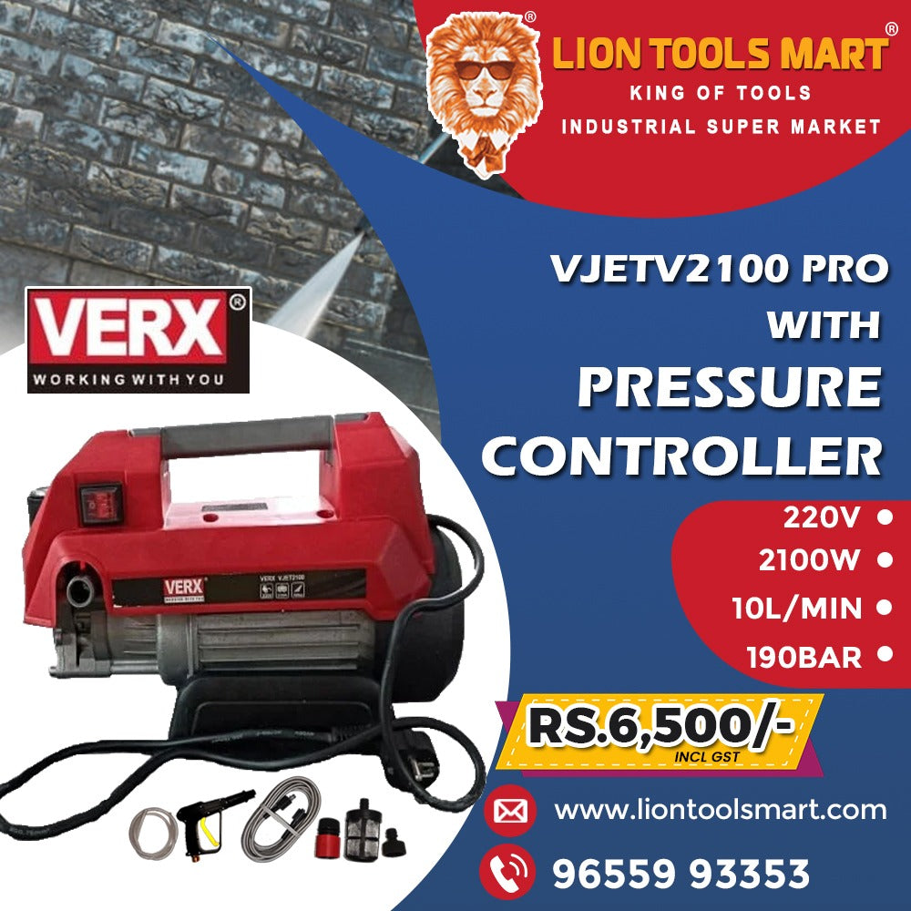 The VERX VJETV2100 PRO is built for professionals and serious DIYers who demand reliability and power. Its core features include a high-efficiency 2100W motor and a durable pump capable of generating 190 BAR of pressure. The standout Pressure Controller feature differentiates the PRO model, allowing you to seamlessly switch from a gentle wash to aggressive cleaning, protecting surfaces while maximizing cleaning performance.