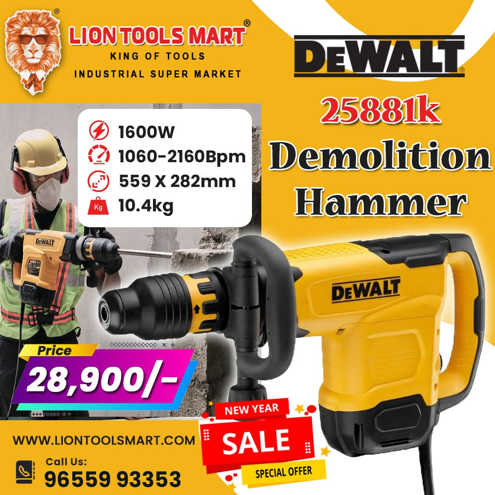 The DeWalt 25881K Demolition Hammer is a powerhouse engineered for professional-grade demolition. Whether you are breaking through reinforced concrete, removing floor tiles, or tackling heavy masonry work, this 1600W beast provides the impact energy and durability required for the most demanding job sites.
