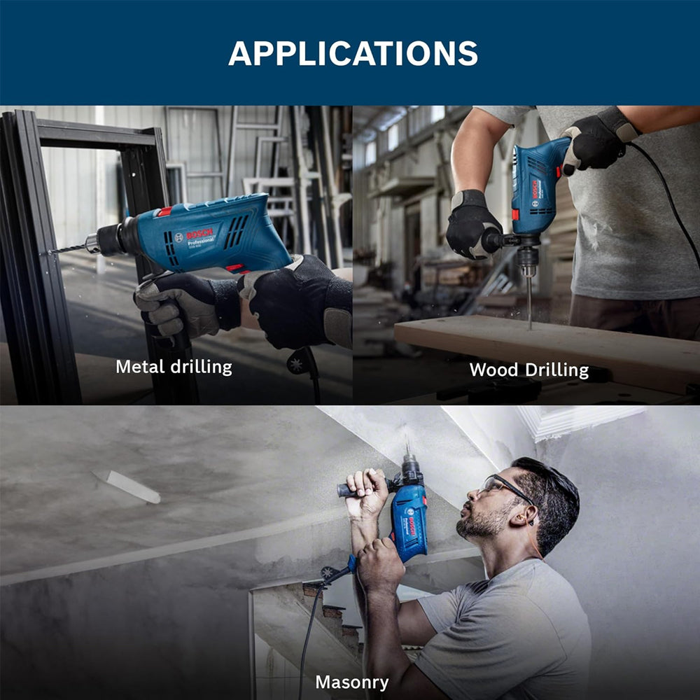 - Applications: The BOSCH electric corded impact drill is highly versatile, suitable for drilling into masonry such as bricks, metal, and wood. It can also be employed for hole sawing and driving screws into metal and wood.