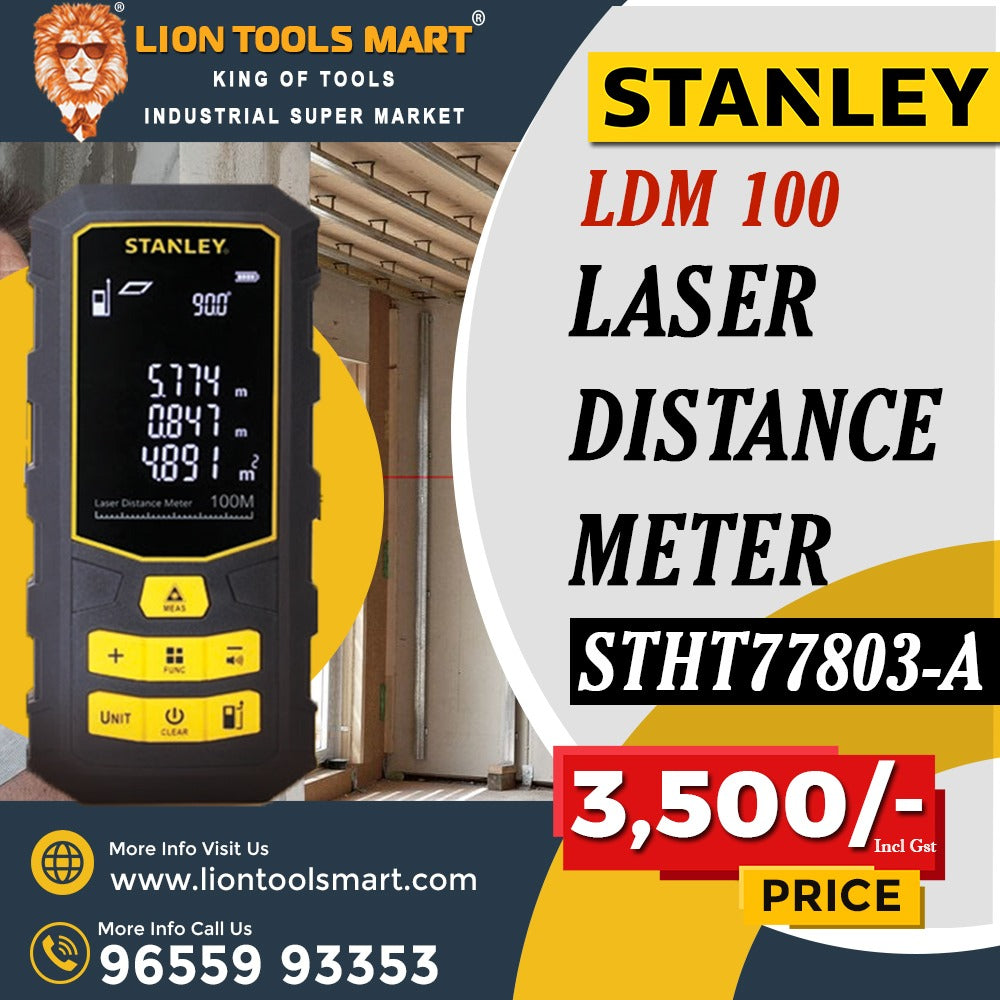 The STANLEY LDM 100 (STHT77803-A) is a professional-grade laser distance meter designed for quick, accurate, and reliable measurements up to 100 meters. Perfect for construction, interior design, renovation projects, and more. This compact and durable tool simplifies complex measurements, saving you time and ensuring accuracy on every job.