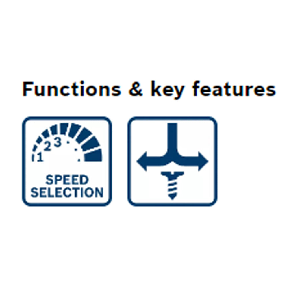 - Rotatable brush plate for same power in forward and reverse direction; Ergonomic switch with electronic speed control