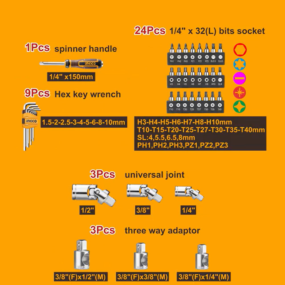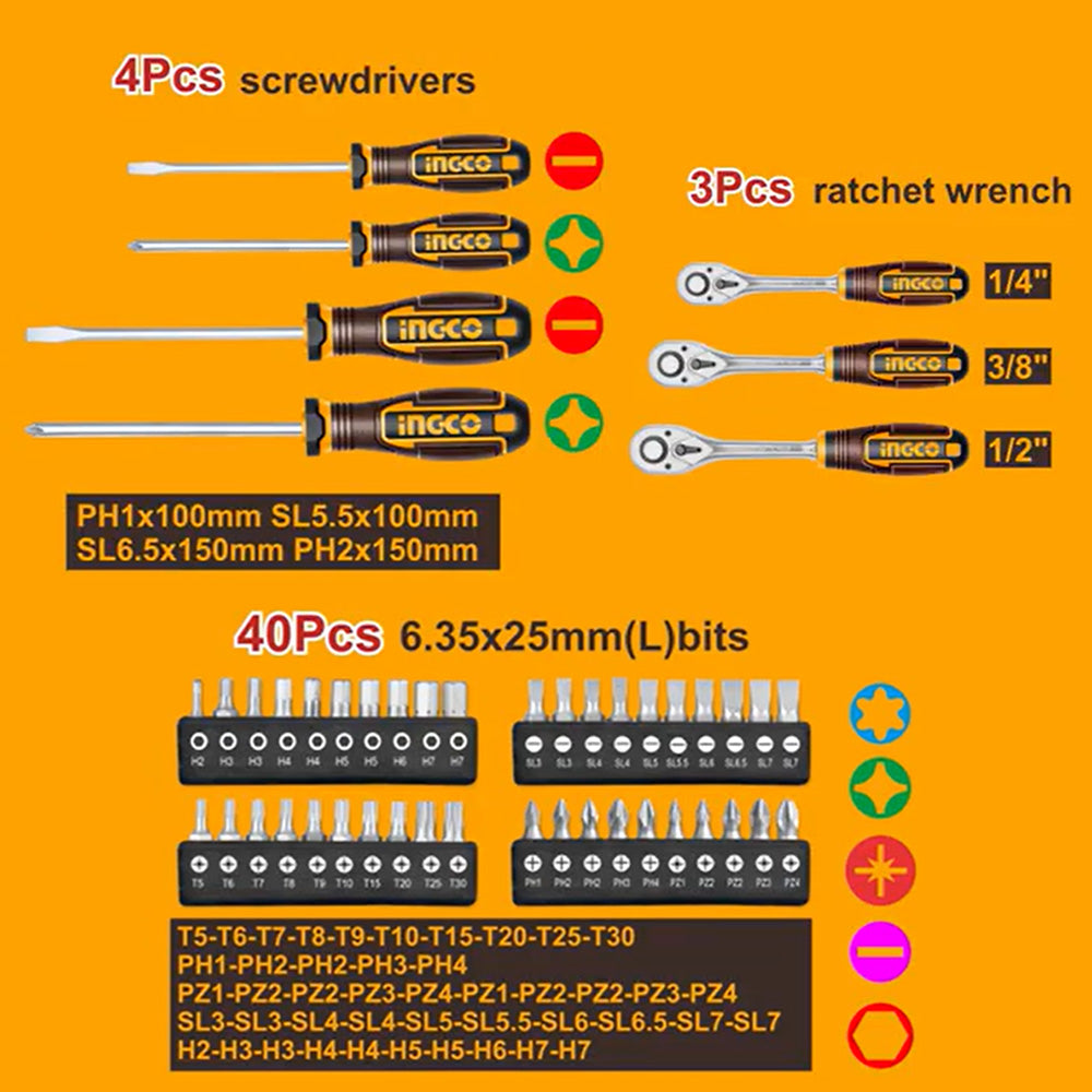 Ingco 172Pcs Cordless Impact Wrench Tool Set | 20V, 4.0Ah Battery Capacity, Max.Torque 550 Nm Brushless Motor (With Battery) HKTHP41723