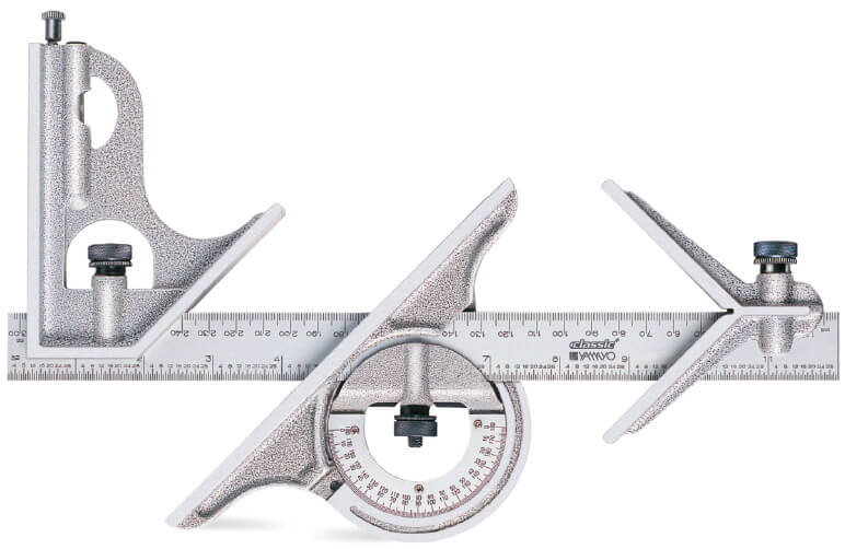 - Three measuring heads are attached to the stainless steel rule (blade) allowing versatile measurements on various types of work pieces.